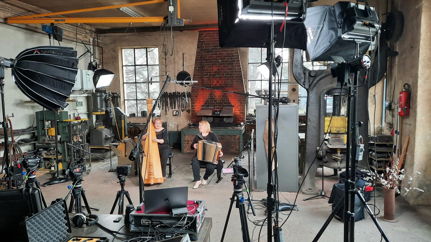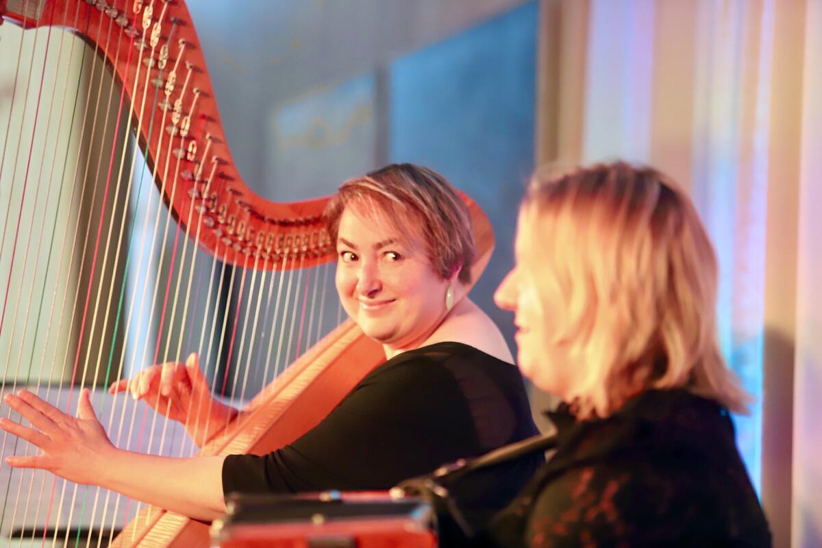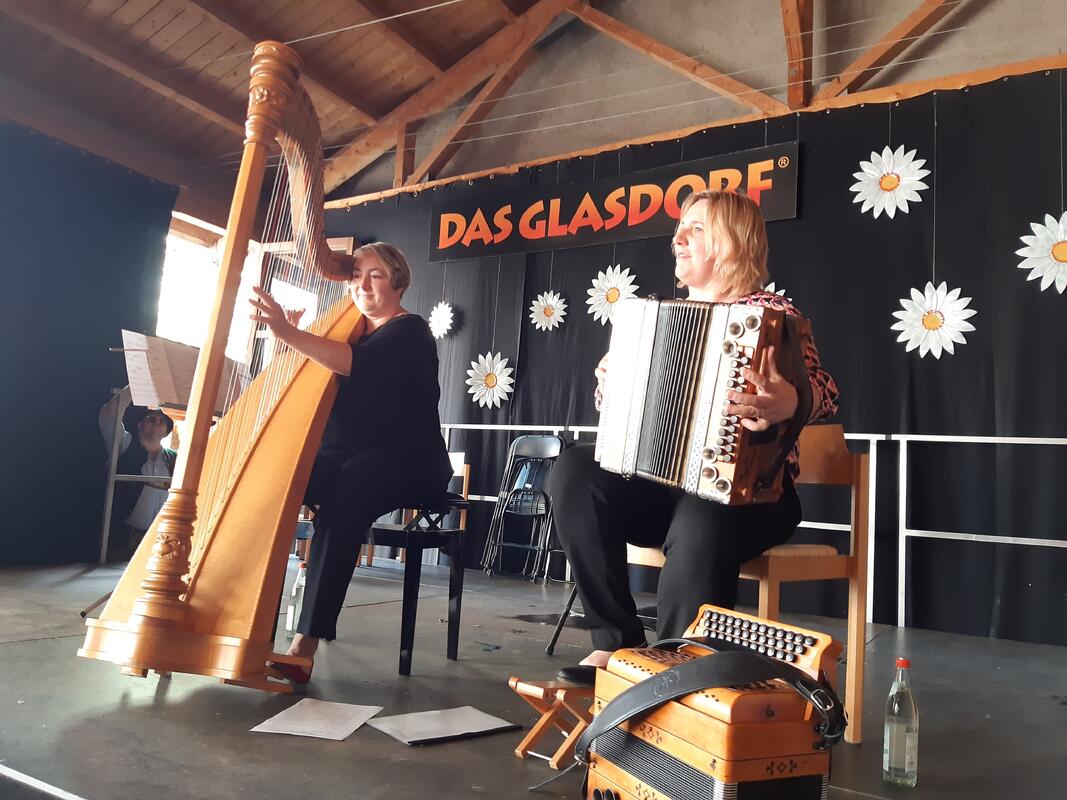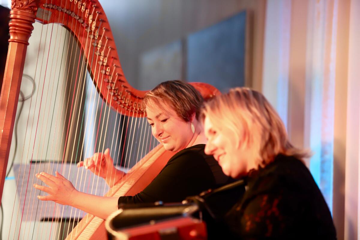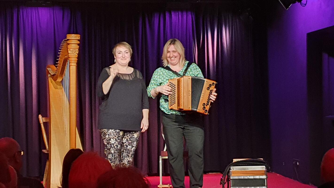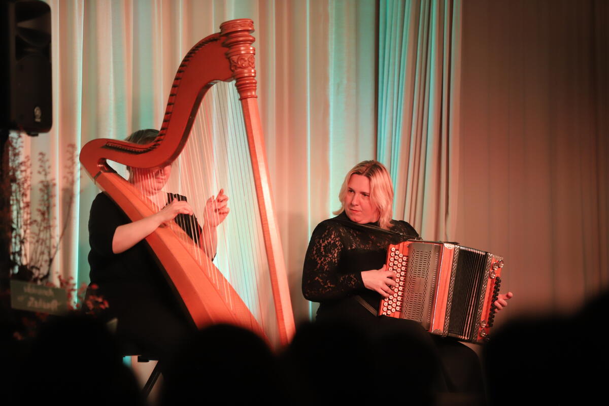 LUFT & SAITEN, Irmi Schuhbauer (Steirische Harmonika) und Elisabeth Grandl (Tiroler Volksharfe) spielten ein akustisches Set zu einem sehr wertschätzenden vollen Haus.